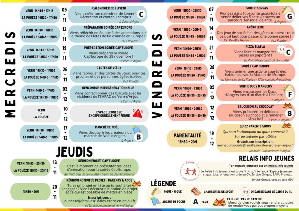 Programme des mercredis et vendredis de Novembre – Décembre 2025
