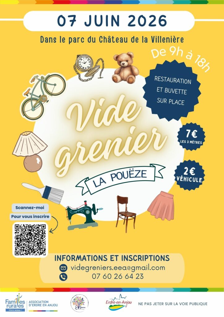 👉 Comment réserver votre emplacement ? C’est simple ! Inscrivez-vous dès maintenant en nous envoyant le bulletin avec les pièces demandées sur videgreniers.eea@gmail.com ou dans notre boite au lettre (7 place de l’Union, La Pouëze 49220 Erdre-en-Anjou. Les places sont limitées, alors ne tardez pas à réserver la vôtre ! 🎉