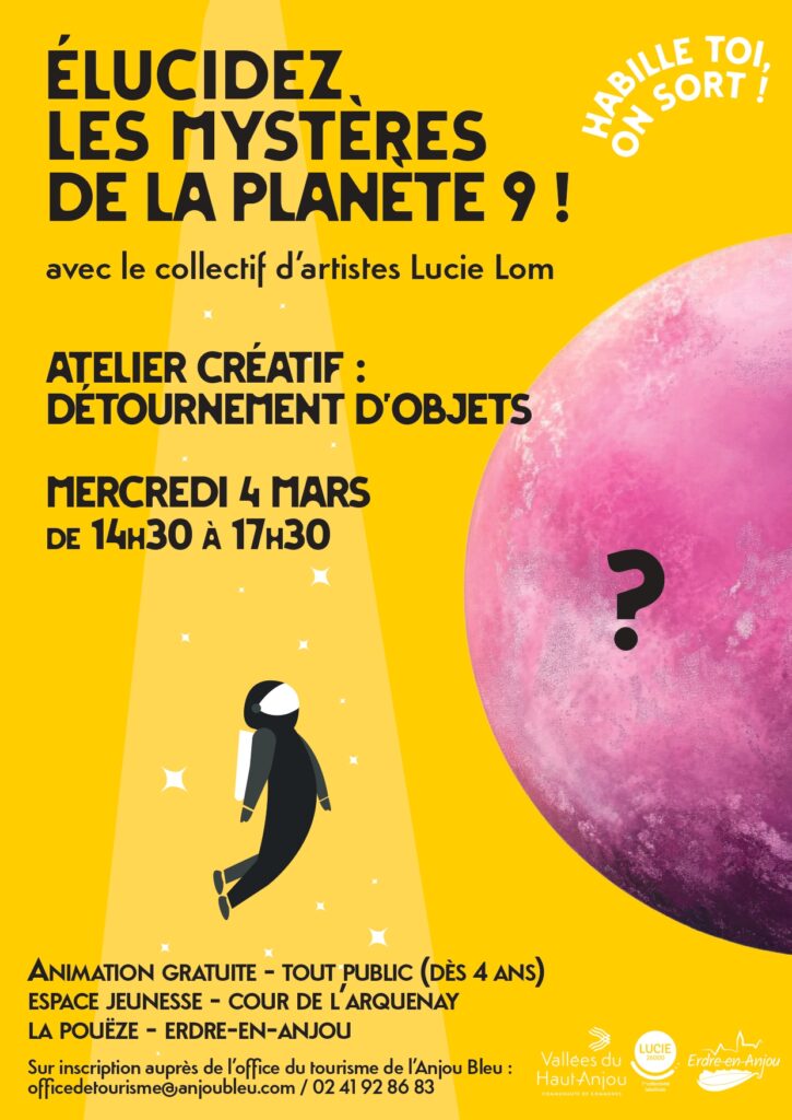 Dans le cadre d’une résidence artistique de la compagnie LucieLom, en partenariat avec la Communauté de communes des Vallées du Haut-Anjou et dans le cadre du Contrat Local d’Éducation Artistique (CLEA), l’association vous propose un atelier gratuit et ouvert à tous le mercredi 4 mars prochain, à La Pouëze, de 14h30 à 17h30.
