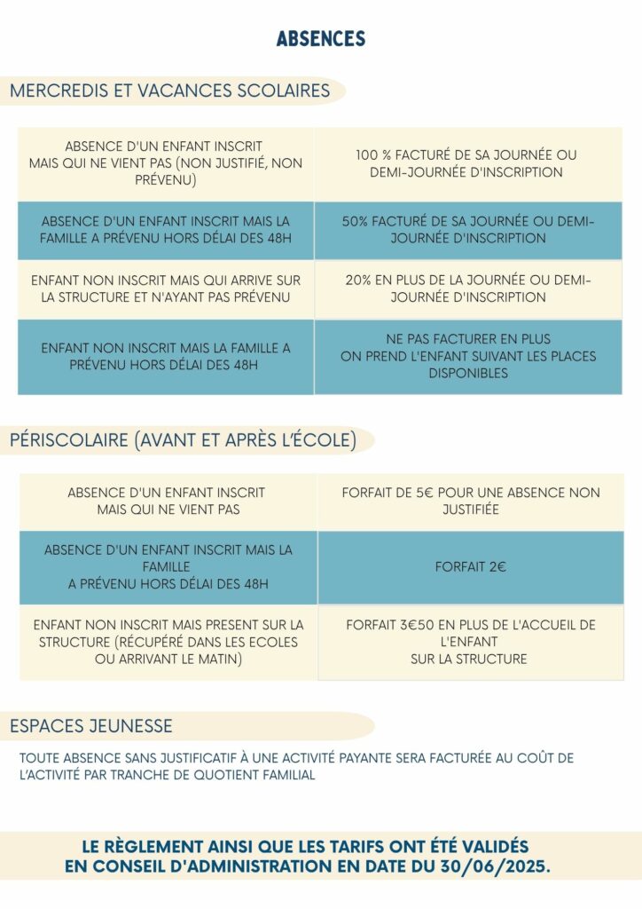 Règlement intérieur et tarifs